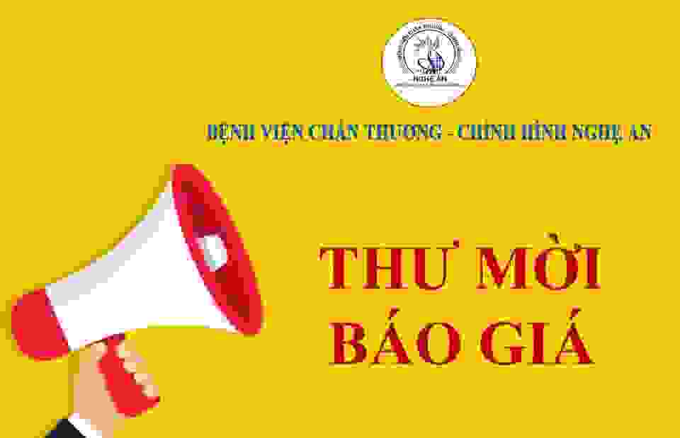 Bệnh viện Chấn thương - Chỉnh hình Nghệ An kính gửi thư mời chào giá cung cấp dịch vụ tư vấn thẩm định HSMT cho các gói thầu mua sắm vật tư, hóa chất của Bệnh viện như sau: