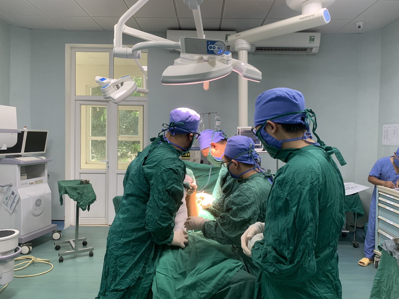 Sau thời gian hội chẩn và lên kế hoạch phẫu thuật tỉ mỉ, Ekip phẫu thuật bao gồm: BS. Nguyễn Mạnh Linh – Phó trưởng khoa Chi dưới, BSCKI. Nguyễn Hữu Đức, cùng các bác sỹ và kỹ thuật viên khác đã phẫu thuật kết hợp xương ổ cối và cánh chậu cho bệnh nhân. Ca phẫu thuật thành công mỹ mãn. Một tuần sau phẫu thuật, bệnh nhân có thể tự ngồi được, chức năng thụ động khớp háng bên phẫu thuật đạt được tối đa, bệnh nhân có thể tự ngồi và vận động nhẹ tại giường.