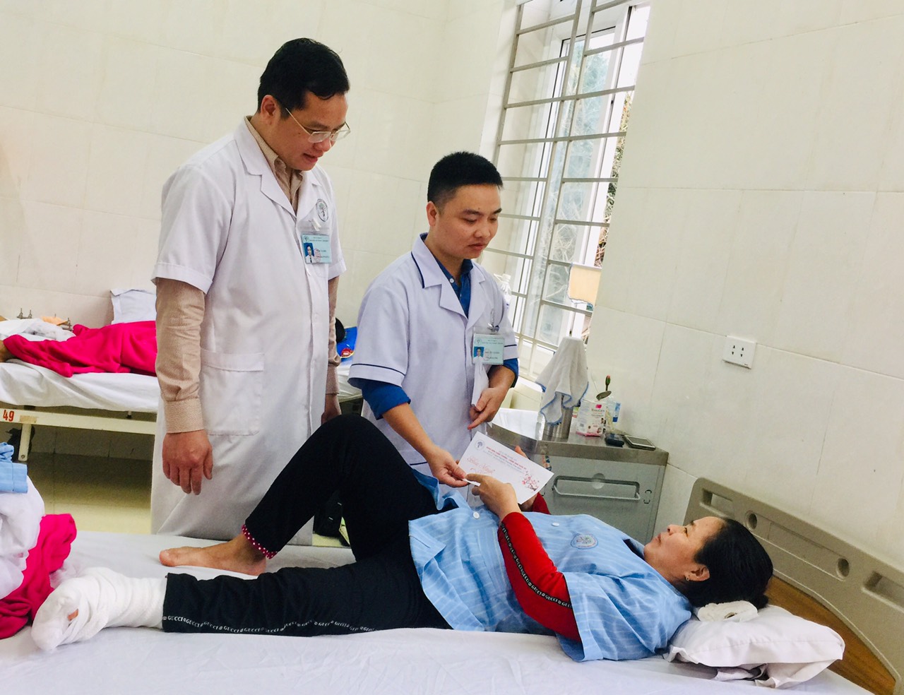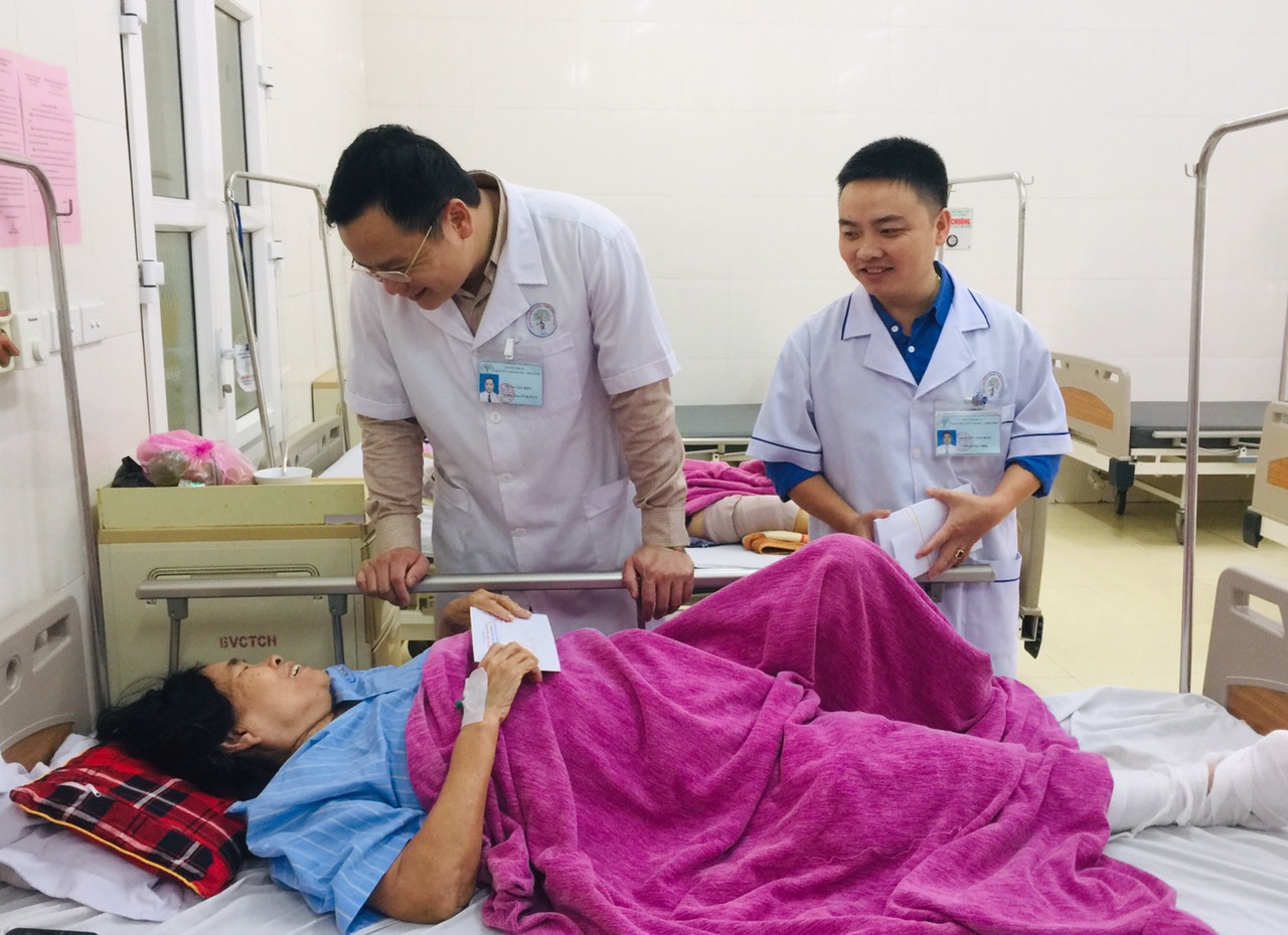Sáng ngày 25/1/2019 (mồng một tết Canh Tý), Đại diện Ban lãnh đạo bệnh viện, đồng chí Thạc sỹ, Bác sỹ Trần Văn Biên – Trưởng khoa PTTK-SN-CS cùng các Y Bác sỹ, nhân viên Bệnh viện Chấn thương chỉnh hình Nghệ An đã đến động viên, thăm hỏi, tặng quà và chúc tết tất cả những bệnh nhân đang nằm điều trị tại bệnh viện trong dịp tết.