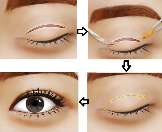 Quy trình cắt mắt hai mí an toàn được tiến hành theo 4 bước sau: