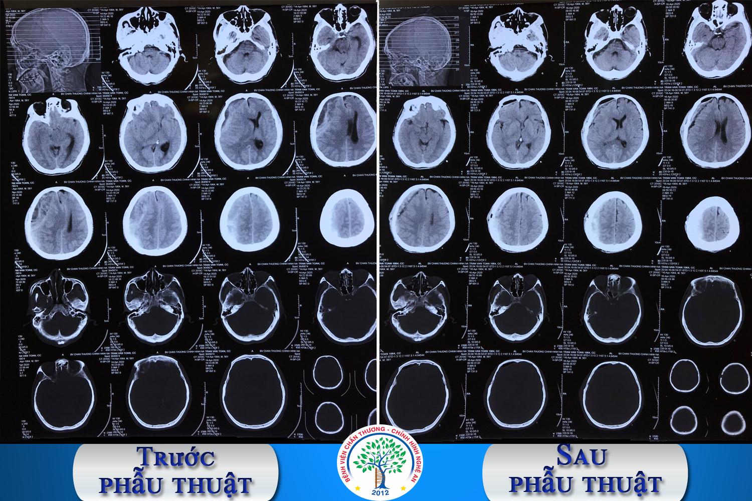 Sau khi hội chẩn bệnh nhân được chỉ định mổ dẫn lưu máu tụ dưới màng cứng của ổ máu tụ mạn tính. Ca mổ được tiến hành thành công bởi kíp mổ do Thạc sĩ, Bác sĩ Trần Văn Biên – Trưởng khoa PTTK-SN-CS làm bác sĩ phẫu thuật . 1 ngày sau mổ, bệnh nhân tỉnh táo, nói chuyện được, đau đầu ít, hai chân vận động tốt, vết mổ khô, ăn uống được, dịch dẫn lưu lượng ít. Khoảng 4 ngày sau mổ, bệnh nhân đã có thể tự đứng dậy đi lại trong khung tập đi.